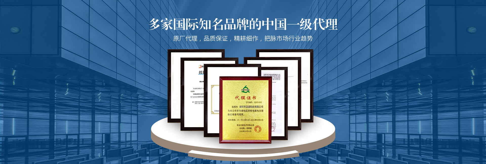 日本黑金剛(NIPPON CHEMI-CON)電容、韓國三瑩(SAMYOUNG)電容、東陽光(HEC)電容、凱美(KAMCAP)超級電容、成鎬薄膜電容、泰容薄膜電容、貝特保險管、大毅電阻、天二特殊電阻、CROWN散熱風扇等多家國內外知名品牌一級代理及華南區域總代理授權。